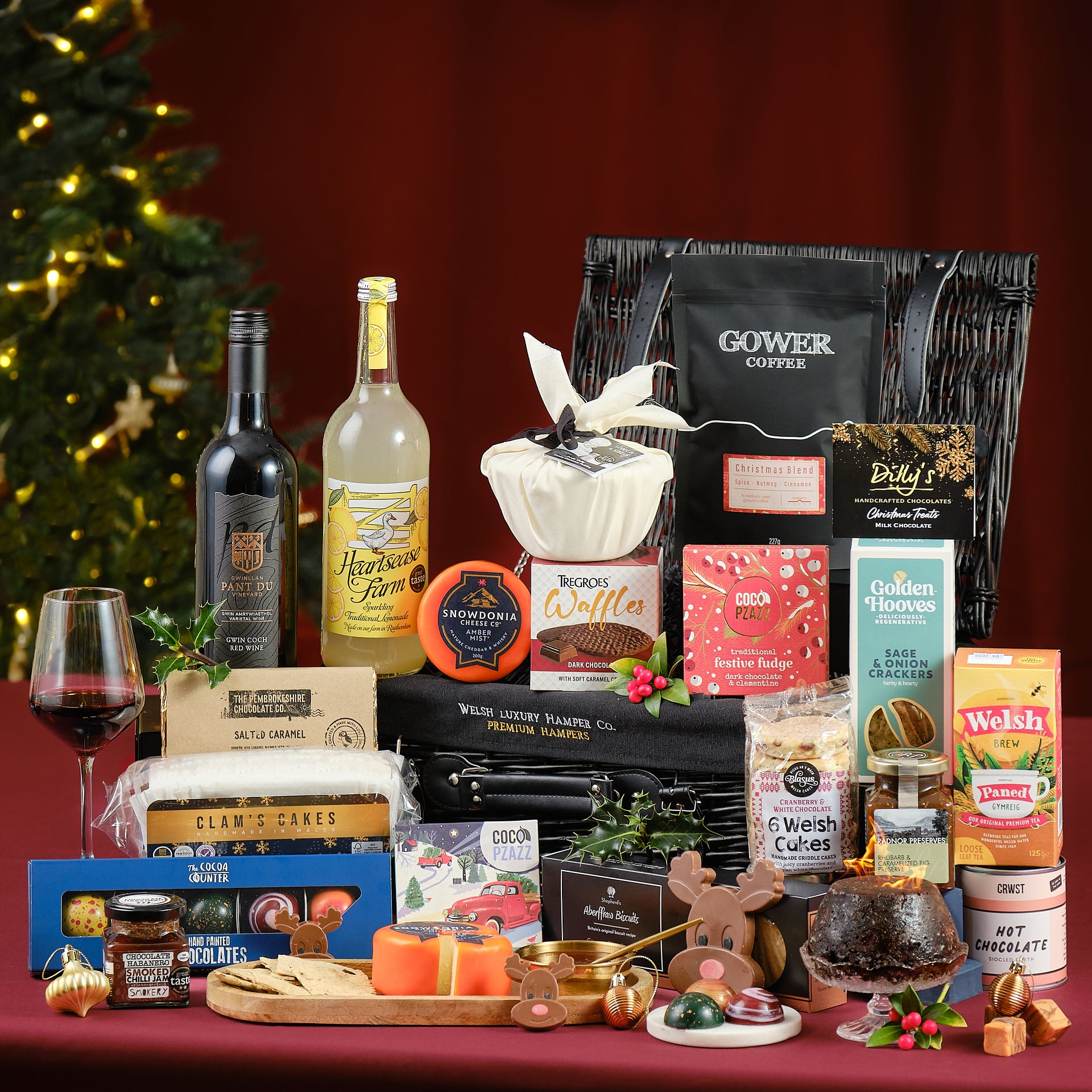 Celebrate the season with The Magic of Christmas Hamper, a luxury Christmas hamper overflowing with festive treats from Wales. Packed with sparkling lemonade, rich red wine, hand-painted chocolates, whisky-infused Cheddar, and a traditional Christmas pudding, it’s the perfect gourmet gift for Christmas. Beautifully presented in a wicker basket, it’s ideal for sharing, gifting, or adding a touch of magic to your festive table.