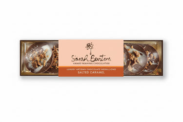 Eight luxury Belgian milk chocolate medallions, studded with golden caramel pieces and finished with a delicate touch of sea salt. Smooth, indulgent, and perfectly balanced between sweet and savoury.